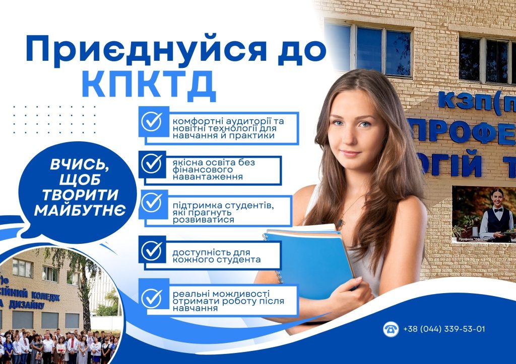 Київський професійний коледж технологій та дизайну, запрошує для продовження навчання внутрішньо переміщених та евакуйованих студентів за професіями: